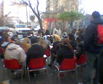 Hoy llegue temprano para ver que onda había y de paso si podía tomar algo caliente, pero las ollas del mate cocido estaban apagadas a esa hora asi que me fui a una cafecito a leer de la toma en los diarios, ya que algo había visto en indymedia.